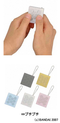 バンダイは、緩衝材として利用される「プチプチ」を模したキーチェーン型玩具「∞(むげん)プチプチ」を9月下旬に発売する。カラーはホワイト、ブルー、ピンク、オレンジ、ブラックの5色を用意し、価格はいずれも819円。(